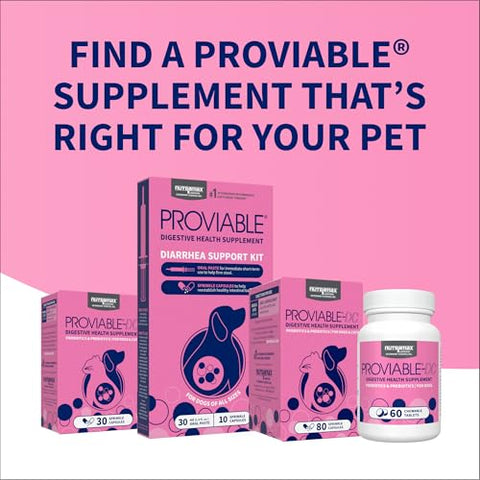 Details: Proviable probiotics for dogs and cats is a clinically researched, multi-strain probiotic that helps support intestinal balance. Proviable contains billions of CFUs of beneficial bacteria that help support a healthy intestinal balance. Proviable contains both prebiotics and probiotics to help support intestinal health. The prebiotics help encourage growth of the beneficial probiotics within the gut. Available in both sprinkle capsule and chewable tablets, Proviable offers an easy way to help support your pet’s gut health. Proviable comes from Nutramax Laboratories Veterinary Sciences, Inc., the #1 veterinarian recommended supplement company.* Nutramax has been a leader in pet health for over 25 years, and provides supplements to support joint health, digestive health, skin and coat health, calming, and more. *Source: Survey conducted among small animal veterinarians who recommended animal supplements.