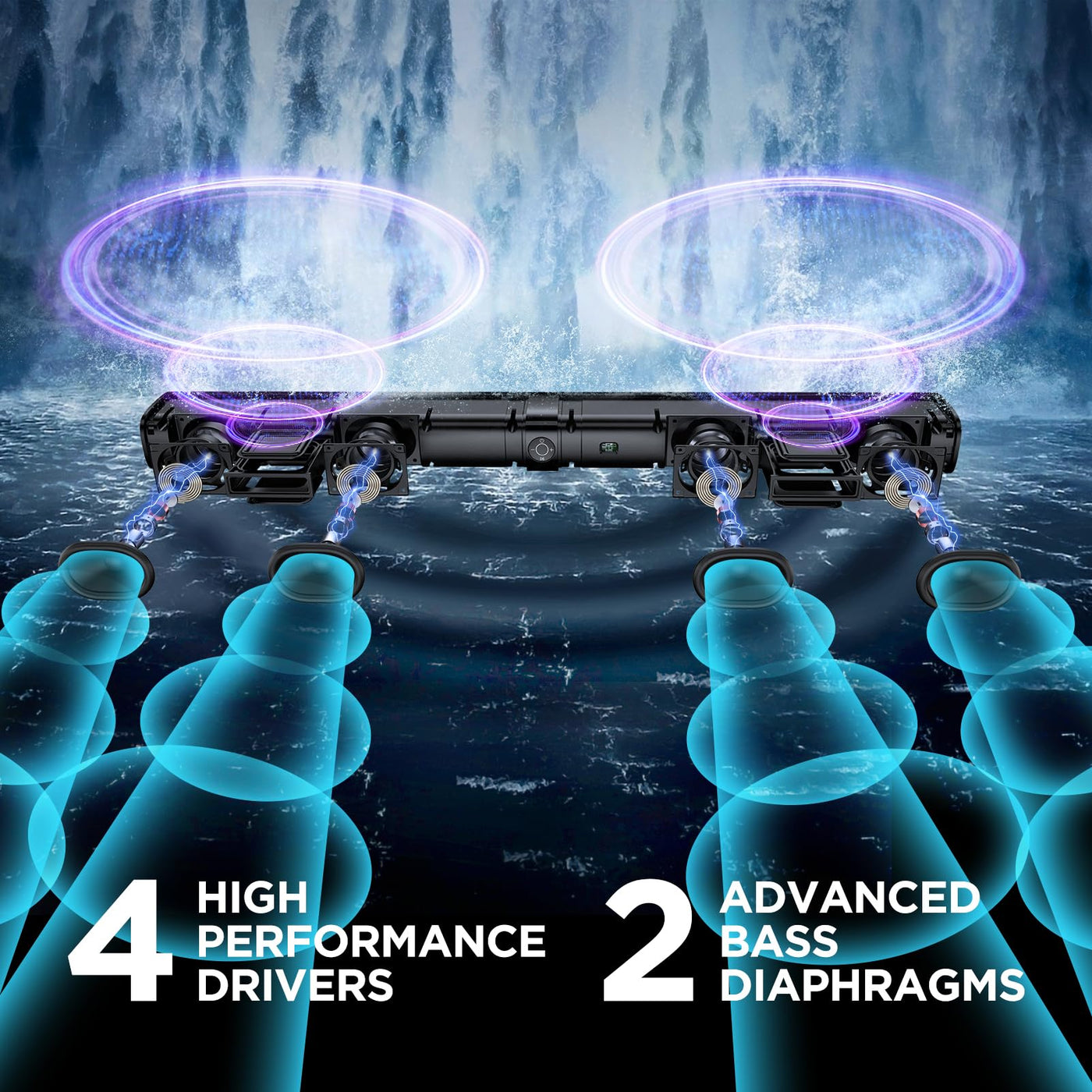 Assistrust Sound Bar for Smart TV, Soundbar with Bluetooth/ARC/Opt/AUX Connect, Auto Volume Boost, 3 Equalizer Modes, 2 in 1 Detachable Soundbar for TV/PC/Gaming/Projectors