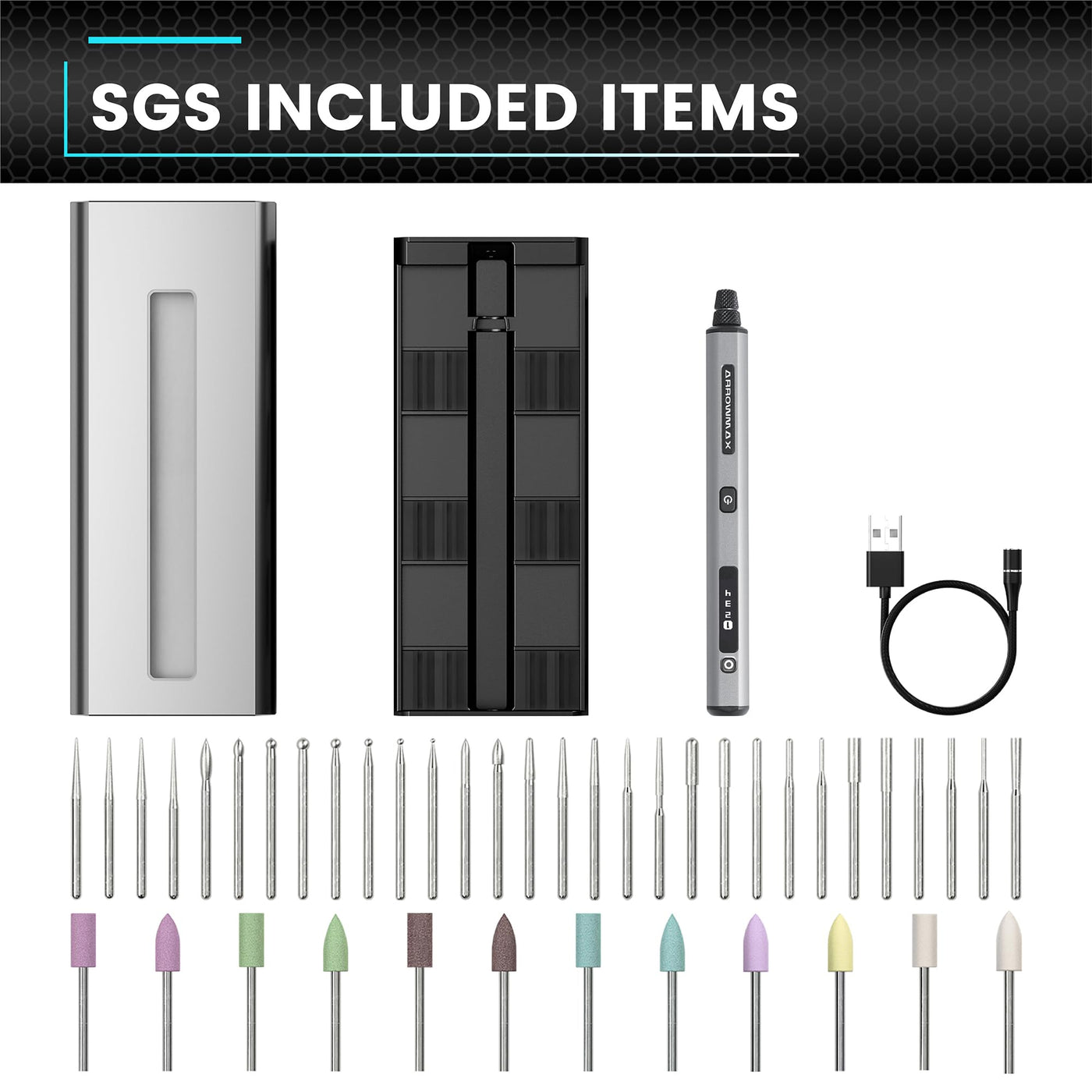 - Magnetic USB Charging, Extended Runtime- Equipped with a 5V rechargeable battery, the engraving machine delivers up to 90 minutes of uninterrupted use after a full charge. For added convenience, the optional large magnetic charger allows for in-box charging, significantly reducing the time spent replacing the pen post-charging.