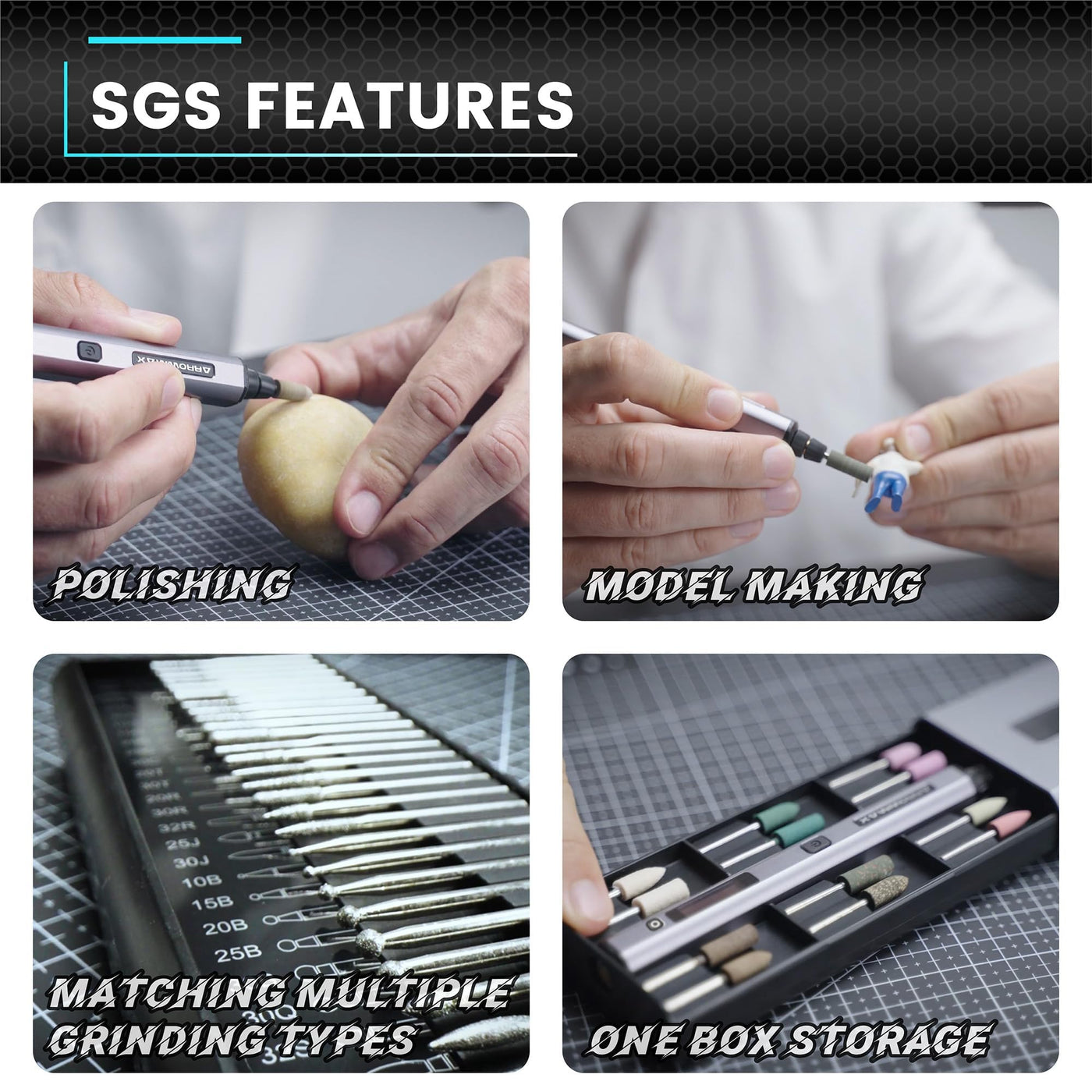 - EFFORTLESS & INTUITIVE CONTROLS- Our mini engraving pen revolutionizes the operation process, enabling seamless speed and direction adjustments of the SGS engraving tool with a single hand. The power button effortlessly toggles between directions, while the gear adjustment key offers four RPM modes tailored to diverse needs. Effortlessly switch between forward and reverse within each mode for a tailored and intuitive user experience.
