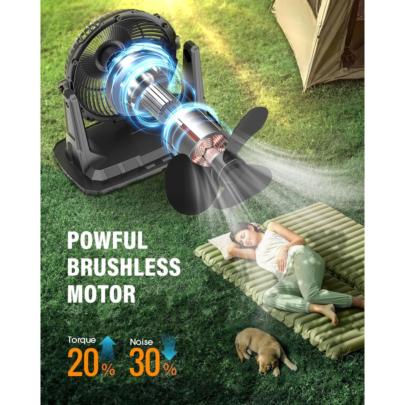 - 🌈【PERFECT FOR OUTDOOR】The camping fan with mister can also operate when there is no standard power socket outdoors, bringing you coolness along the way. Compared with plug-in fans, it can run wherever you need it, providing you with cool air at all times. It is a summer essentials for camping, beach vacation, golf cart, hiking, gym, tents, outdoor workplaces, garden, yard, patio, porches, decks, farms, picnics, barbecues party and etc..