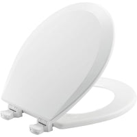 This Bemis closed front toilet seat with cover is made from molded wood with a multi-coat enamel finish for durability. The seat features two color-matched bumpers, color-matched Easy Clean & Change hinges with non-corrosive, top-tightening bolts and wing nuts. NOTE: Colors on a website or printed from a website can vary drastically from the actual color of the toilet seat due to monitor and printer settings. The colors on this page are for approximate visual use and should not be used to match colors exactly to a toilet bowl.