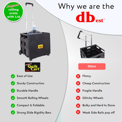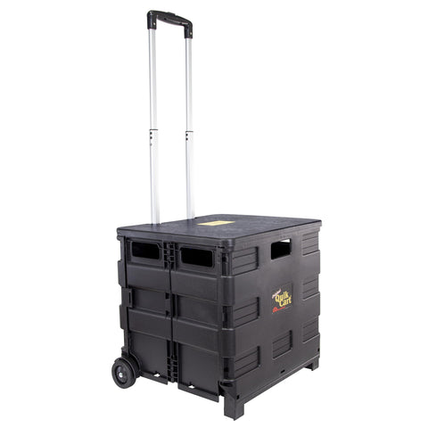 Details: Original Quick Cart. Use it, abuse it, store it! This can be used for transporting, shopping, traveling, portable storage, and seating and as a stepping stool. This can be abused by hauling up to 80 pounds, has a durable heavy duty plastic seat. It can be stored by collapsing down to 3 inches thick, is rust proof, and weighs less than 8 pounds. This package contains one box trolley with the dimension 18x18x3 inch. This rolling bin facilitates the transport of groceries for seniors like no other utility carrier because of its ergonomic retractable handle. Keep your document organized on this wheeled utility organizer. Use this rolling cart (folding cart) as a rolling tool box, rolling cart for teachers, laundry basket with wheels, rolling files carts with wheels or file crate.