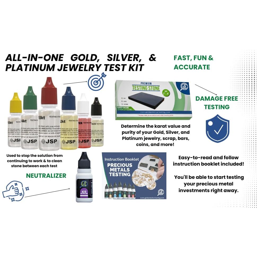 - FUN, FAST, AND ACCURATE! DETERMINES THE KARAT OF GOLD, SILVER, & PLATINUM JEWELRY IN SECONDS!