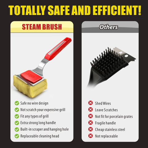- Safe and Efficient - SteamWizards cleaning can save a lot of elbow grease when dealing with those stubborn residues. With a safe bristle-free grill brush, you don't have to worry about swallowing those dangerous wire bristles that can break off and end up in your food. It's safe and efficient!