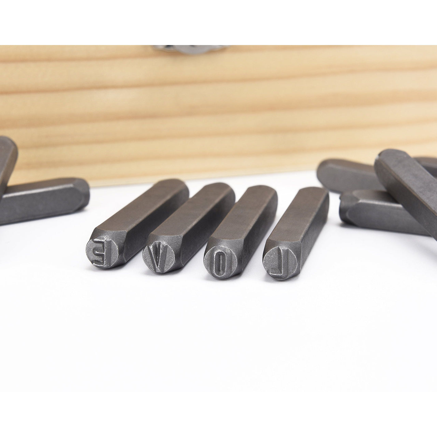 - **Comprehensive Letter and Number Set:** The HimaPro Letter and Number Stamp Set includes uppercase letters A-Z, the & character, and numerals 0-9, all with a 1/4 inch (6mm) character height. Achieve versatile and professional imprints for your projects.