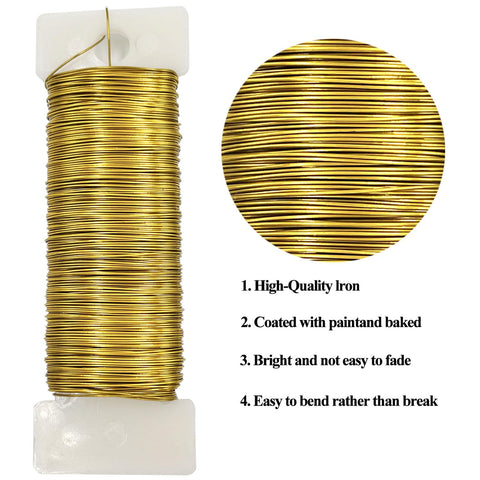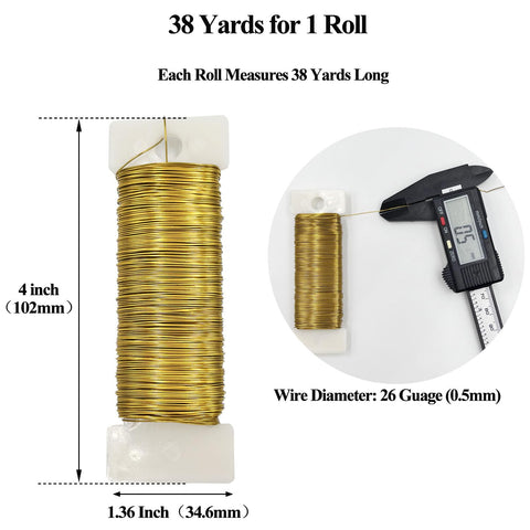 - 【Package Include】You will receive one pack containing 1 roll, each with 38 yards/115 feet/35 meters of 26-gauge golden wire. They can be cut to your desired length, ensuring you never run out