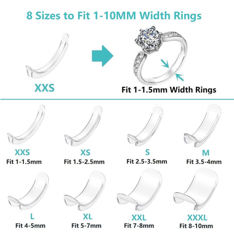 - REDUCE RING SIZE : Totally 8 Sizes in One Pack, Reduce Ring Size 0.5-2 Size, Perfect Fit for loose rings, Prevent the ring sliding off your finger.