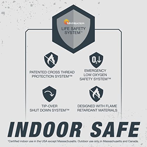 - Heat Levels: Gives off 4,000, 9,000, or 18,000 BTU per hour with a 450-square feet heat range and can be used with propane tanks up to 40 lbs with the use of an additional hose and filter