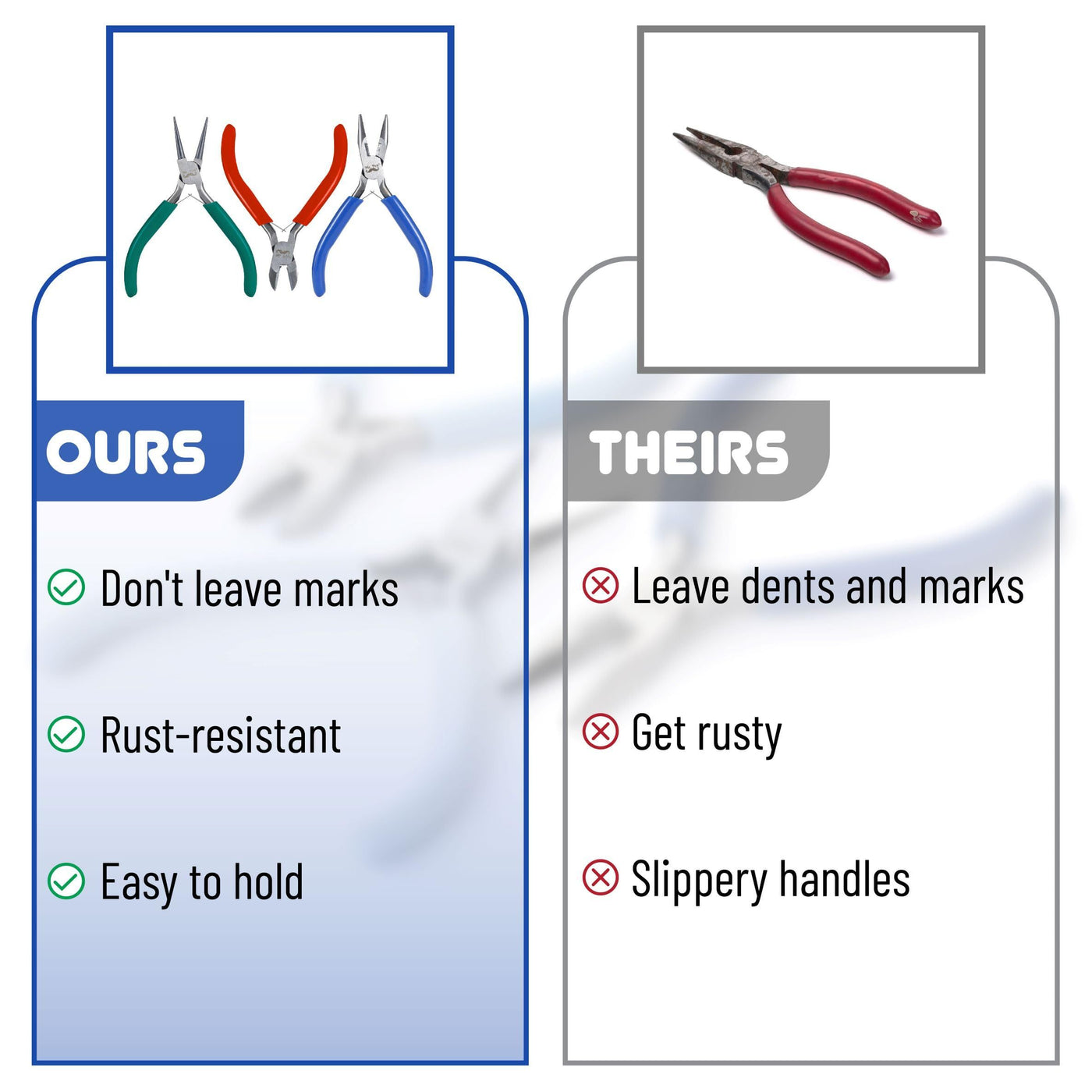 - π’ There might be some oil on the head or handle of the jewelry pliers you receive. This may look the pliers are dirty, but In order to prevent rusting the pliers are coated with oil. Please wipe them before use. Also before storing please apply oil to them to avert rusting