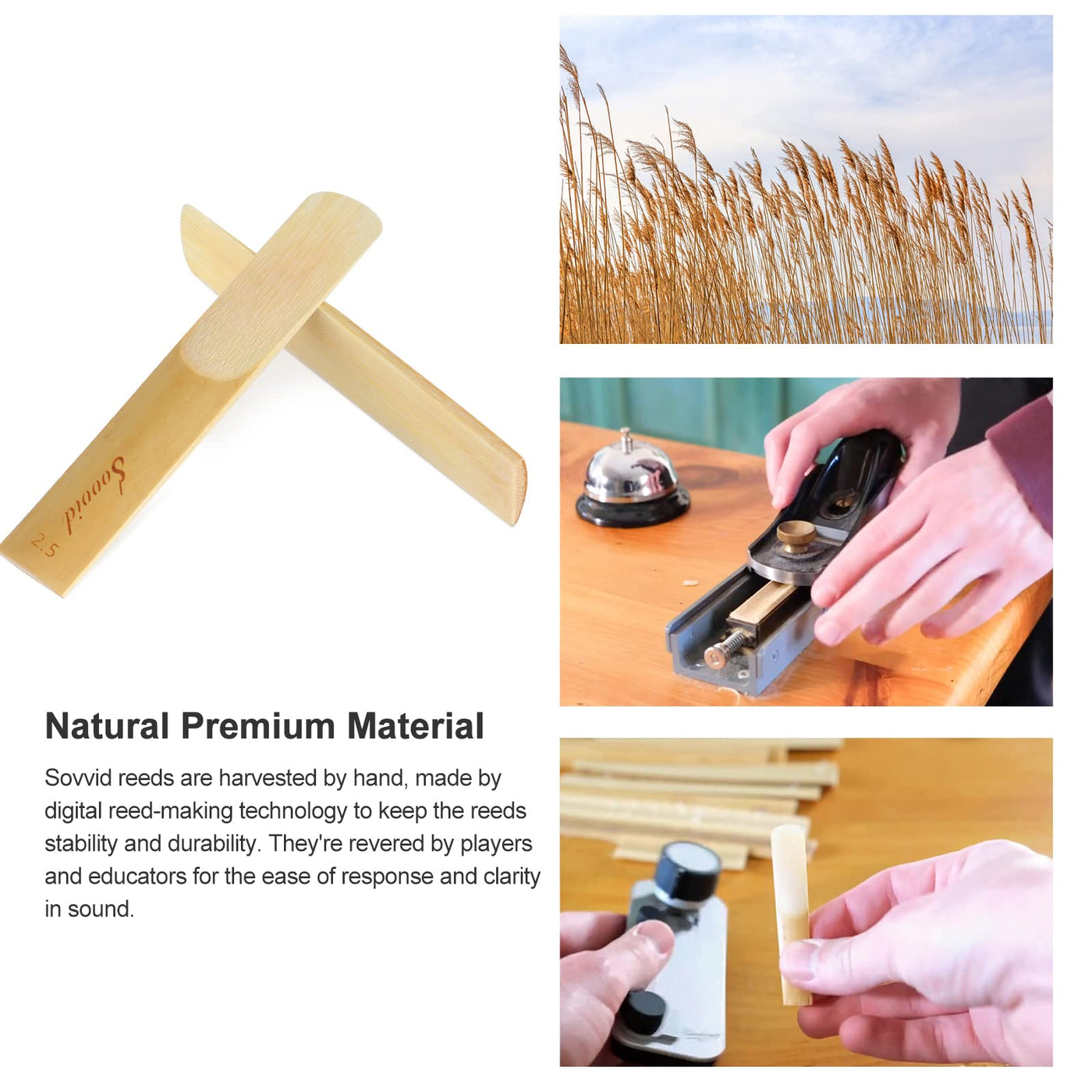 - Premium Material Bring Clear Sound: Strength 2.5, box of 10. Sovvid saxophone reeds are made from high quality natural reeds using an advanced process, and have perfect vibrational characteristics, do not deform or break easily and maintain a rich tone