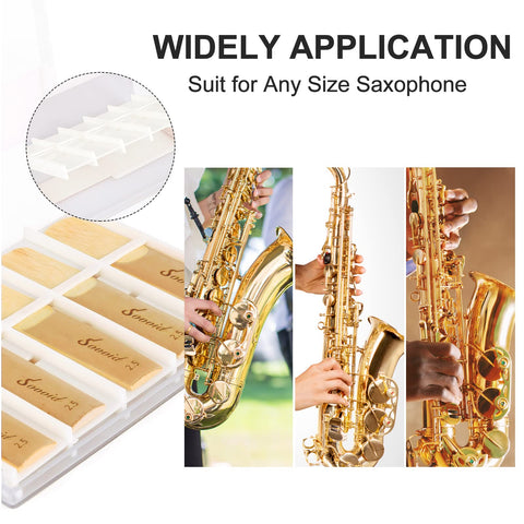- Good Protection and Strictly Quality Control: The alto sax reeds are sealed in plastic cases to ensure their freshness. The ten reeds are placed above and below the spacer, separated from each other by baffles to greatly reduce the possibility of damage