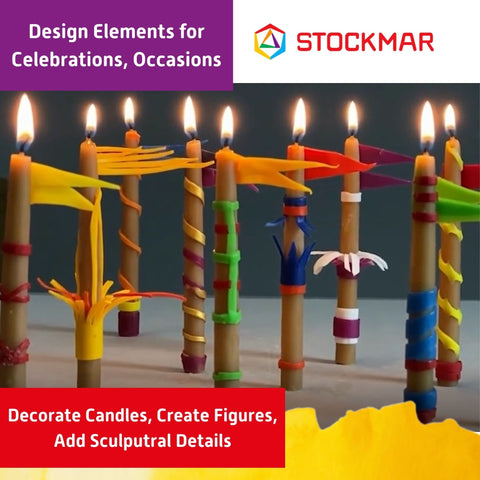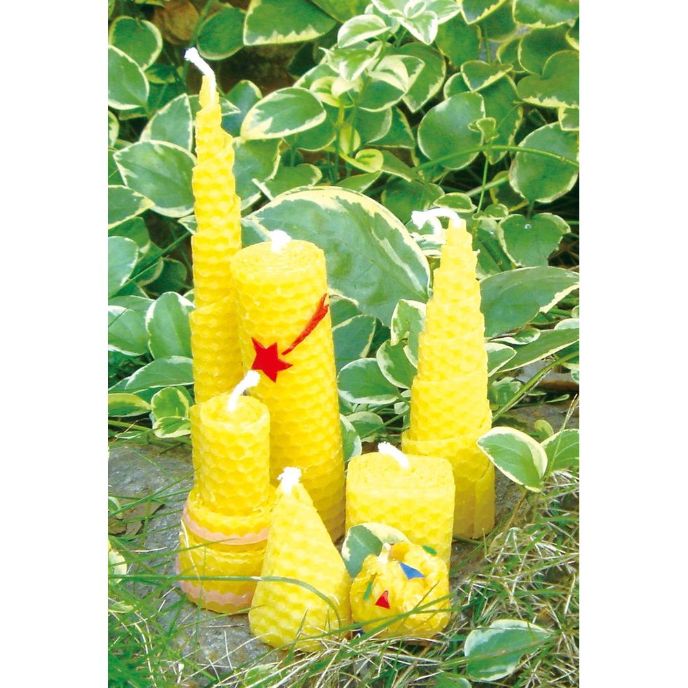 Details: Thin Stockmar wax film inspired for imaginative decorating and designing wax candles, chip boxes, tin cans, glasses, picture frames. The wax film can be cut, cut out with moulds, knead, roll, shape and sticks to the respective surface thanks to its high beeswax content. Geometrically cut wax pieces create mosaic-like patterns. For more elaborate patterns, make a stencil from cardboard, press it on the film and cut out the contours. Wax foil strips make small flowers rolled up, with a toothpick or similar. Patterns are embossed into the film. This allows you to achieve plastic and three-dimensional effects.