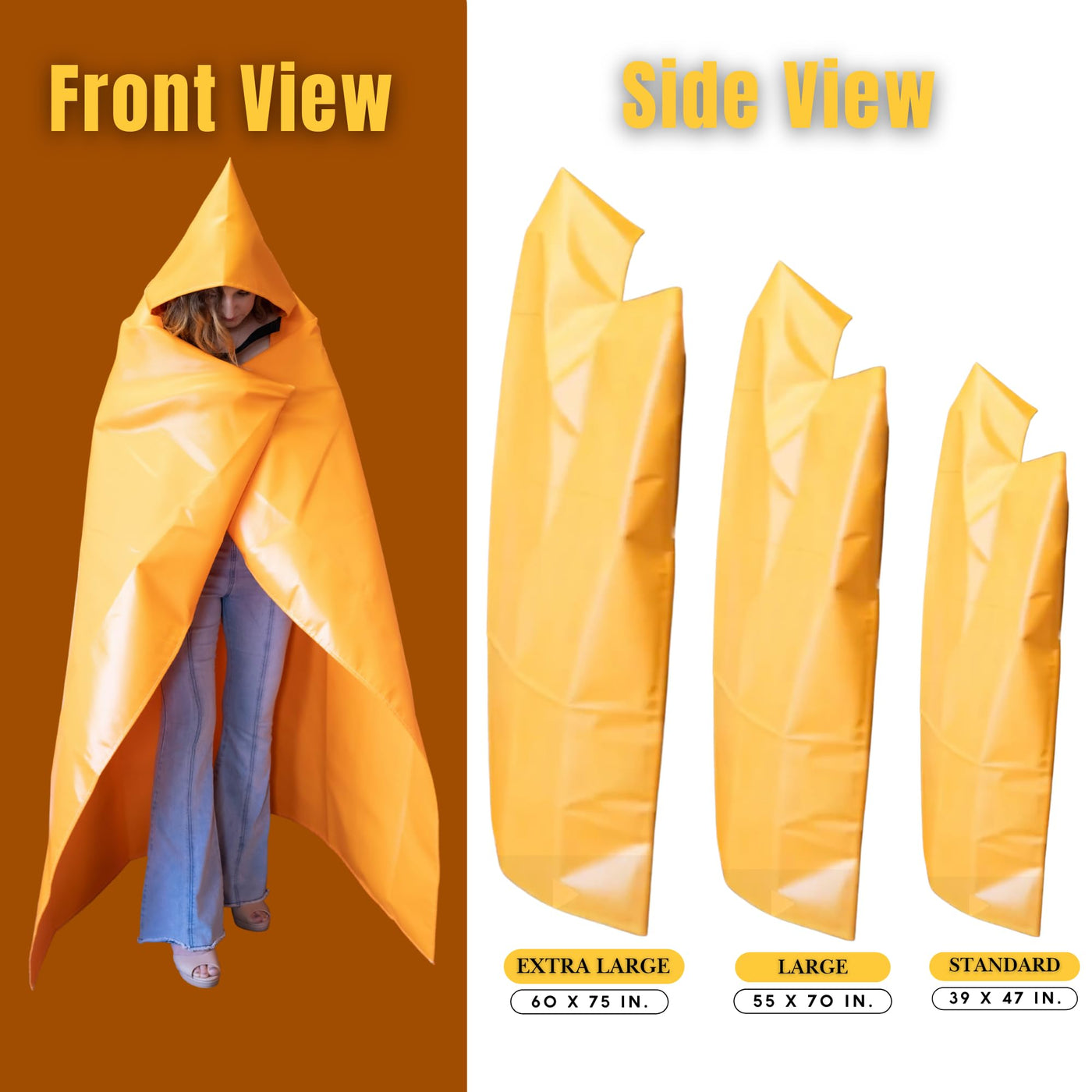 - Universal Fit for Adult and the Youth: Generously sized to provide full-body coverage, the cape measures 70" x 55", ensuring complete protection from shoulders to below the knees. It’s roomy enough to wear over clothing and easy to slip on quickly in an emergency. This fireproof cape is a valuable addition to your survival gear and emergency supplies, offering an alternative to a fire blanket. For enhanced safety, it pairs well with a fire hood or fire escape hood, and can even be used to help shield your pets too during an evacuation.
