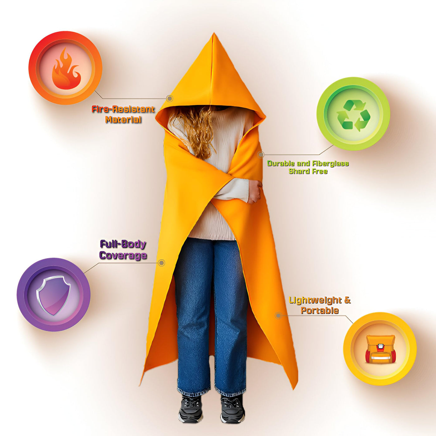 - Easy to Use: Designed for quick functionality and instruction, simply pull the cloak hood over your head and wrap it around your body when fire strikes. The flame resistant cover provides rapid protection and is suitable for all ages, including as part of a baby fire escape plan or a fire cloak adult setup. Store it near exits, in vehicles, or with your disaster care package. Made from durable fire retardent materials, it should be checked regularly for wear or damage to ensure reliability in emergencies