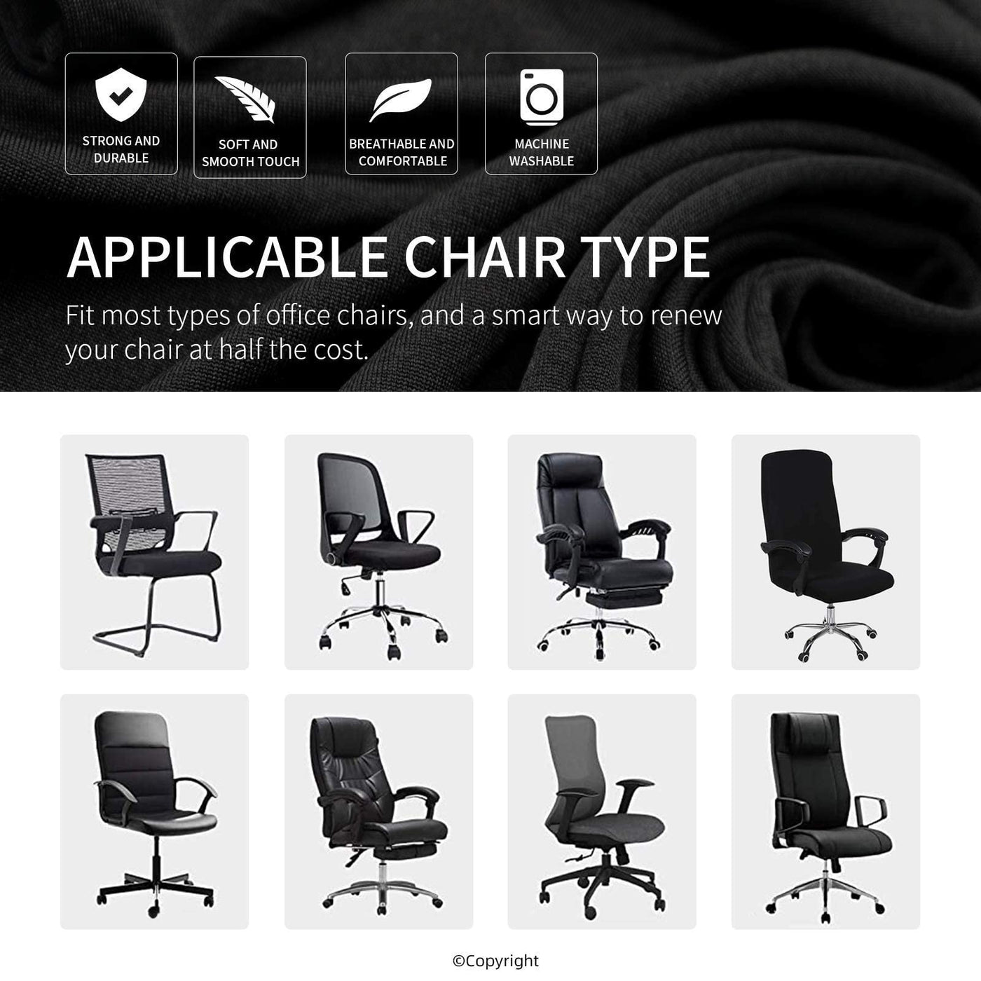 - 【Super Stretchy & Thick Fabric】- Our office chair slipcover adds extra 15% spandex knit fabric, so it’s extremely stretchy and allows to fit perfectly for most office chairs: boss chair, rotating chair, and more. By using 180 GSM of high-quality, durable, and thick fabric, our covers will not easily pill and fade. It is skin-friendly and breathable for all seasons, and it will prevent sweat marks on chairs.