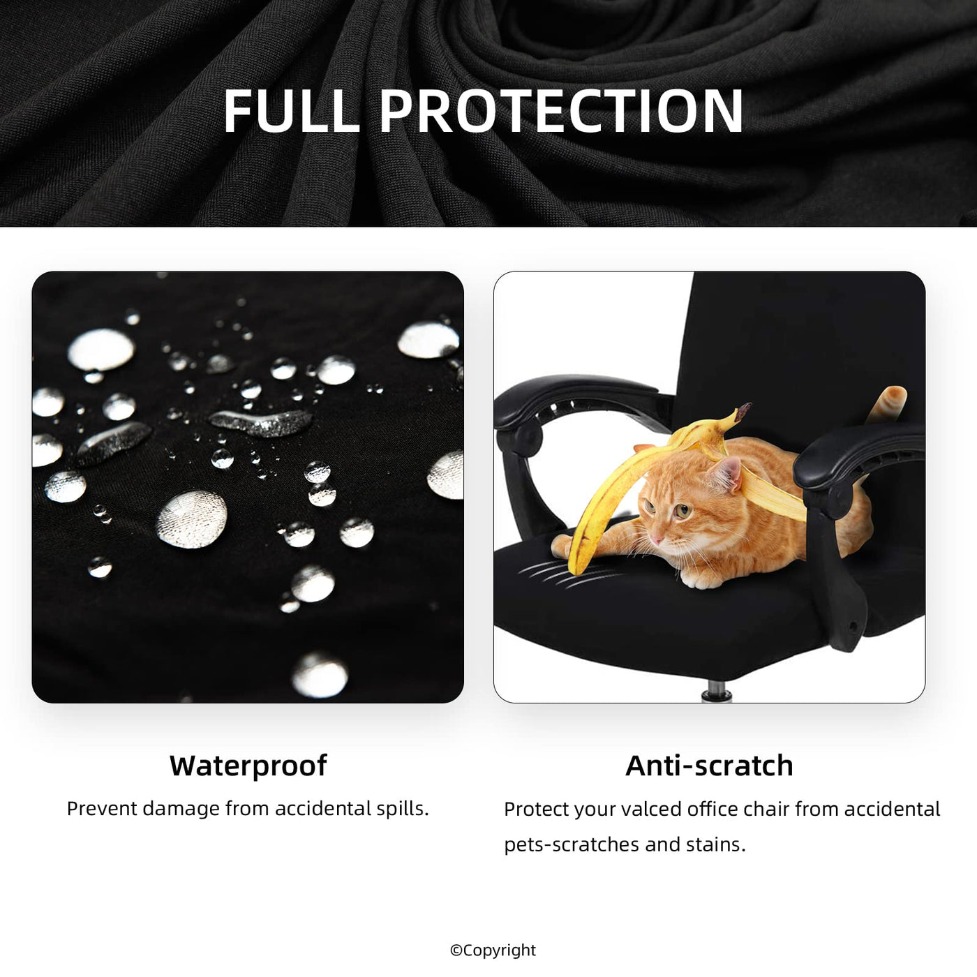 - 【Full Protection】- The seat protector is water resistant and spill-proof. Liquids will bead up and can be easily wiped with a napkin. It’s also stain-resistant, and can prevent dulling and damage from normal dust and wear. This computer chair cover will protect your valued office chair from accidental scratches or pawprints by your lovely cats and dogs.