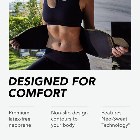 - SWEAT FASTER, SWEAT HARDER: Waist trimmer designed with Neo-Sweat Technology, an anti-slip, moisture-repelling interior that provides superior heat insulation to increase core temperature for a harder, faster sweat and to cut excess water weight