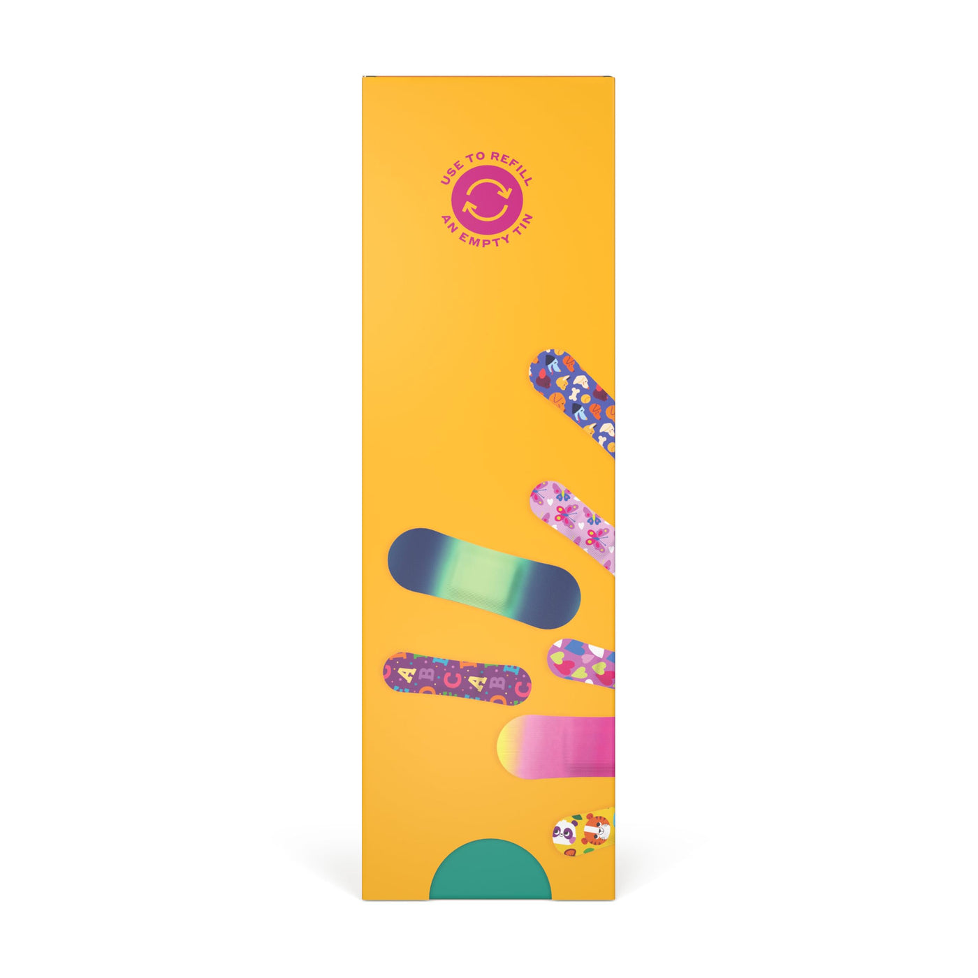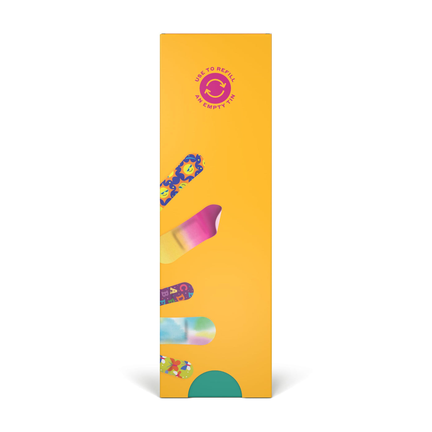 Details: Packed full of patterns. This mighty 100ct refill pack comes with fourteen colors and patterns in three different sizes so you always have a favorite on hand. It’s also great for refilling your empty Welly tin—pour ‘em on in! Because when you’re ready for anything, everything is possible. Welly is for everyone that was afraid to fall down, fail, get bumped, get scratched and did it anyway. Welly is for the wellness in all of us, however that looks, and for being prepared for whatever comes our way. We wear our bandages like badges of honor for a life fully lived. Our portable first aid kits are packed with essentials, so you have what you need, when you need it. And our signature Welly tins can be reused again and again—the possibilities are endless.