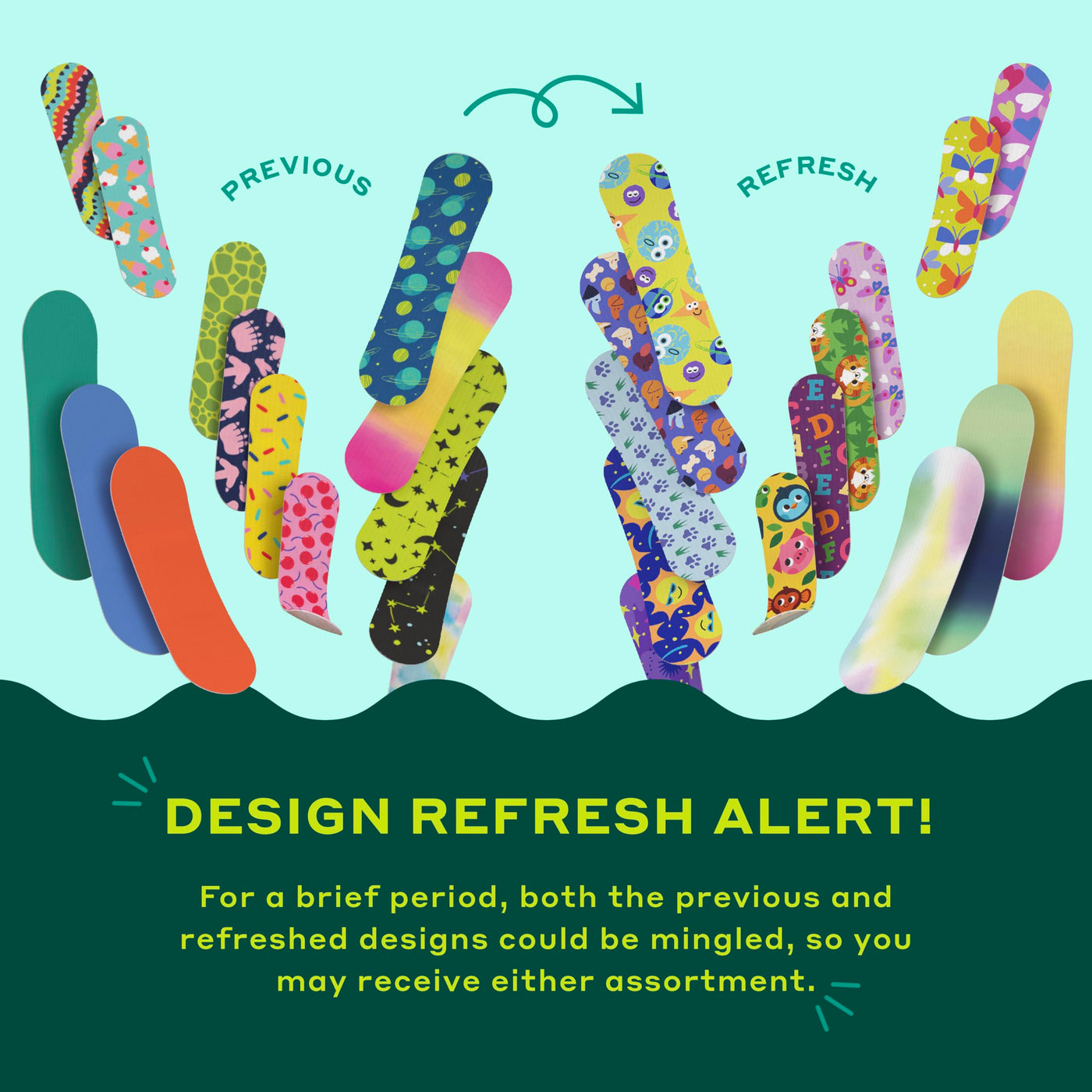 - 3 different sizes; 14 unique colors and patterns to help you wear your bumps and cuts with pride