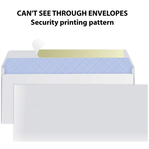- CAN'T SEE THROUGH ENVELOPES - Security printing pattern on the inside prevents from seeing what inside. Windowless envelope