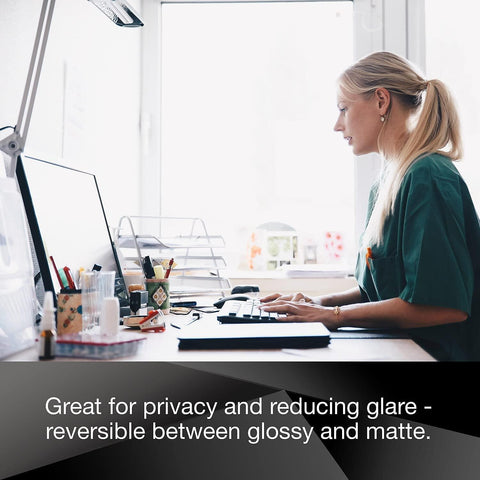 3M Black Privacy Filters for monitors provide world-class "black out" privacy from side views outside the 60-degree viewing angle, while creating an excellent, high-resolution viewing experience. Reversible between a glossy side and a glare-reducing matte side that helps reduce reflections and hide fingerprints, so you can enjoy pristine image clarity. The advanced microlouver technology creates an excellent, high-resolution viewing experience.