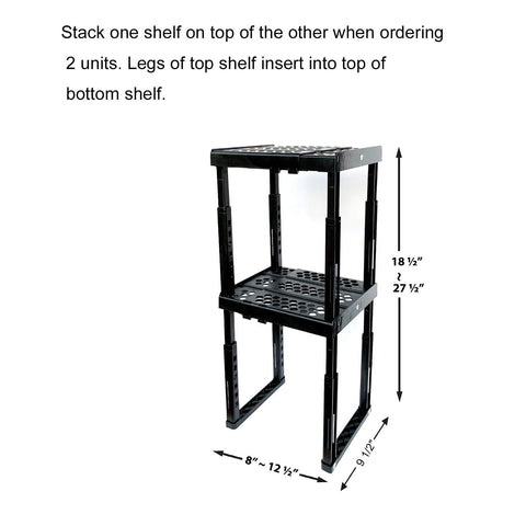 - STACKABLE: Stack one shelf on top of the other when purchasing multiple units. Legs of top shelf insert into top of bottom shelf. Create a shelf wherever you need one, or combine multiple shelves for tons of extra storage.