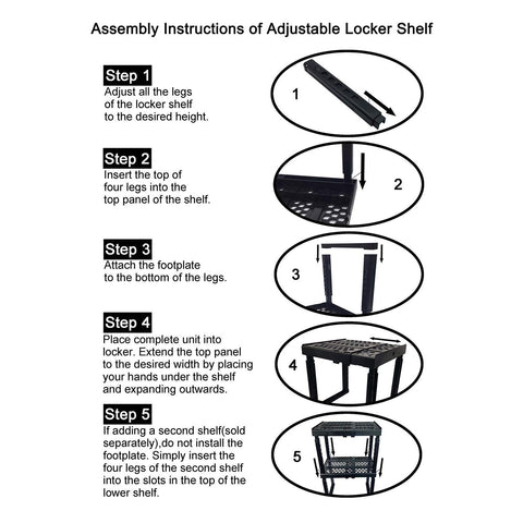 - EASY TO USE: perfect locker shelf for work, school or gym lockers. Assembles in less than 2 minutes without the need for tools.