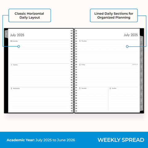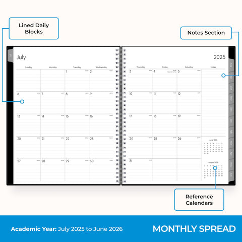 - [STAY ORGANIZED ALL YEAR] July 2025 - June 2026 professional day planner with 12 months of monthly and weekly pages for easy academic planning and scheduling; 2 additional monthly pages (May 2025 - June 2025) are included