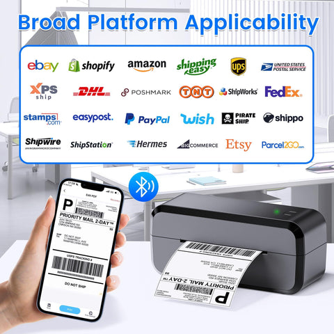 - Wide Compatibility: Our thermal label printer is compatible with major e-commerce platforms like eBay, Shopify, Amazon, Etsy, Poshmark, USPS, FedEx. Our printer supports labels ranging from 1.0 to 4.6 inches, Ideal for envelope, address, barcode, packaging, home or office labels