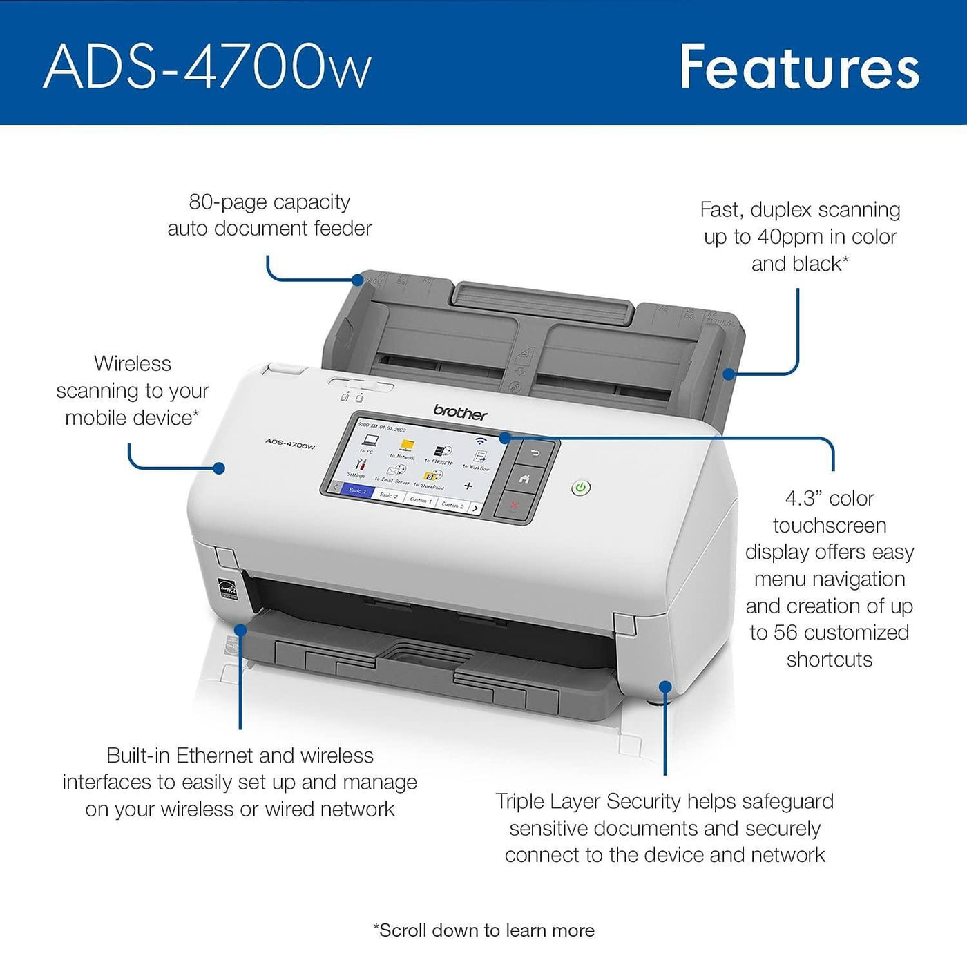 - ROBUST CAPTURE SOLUTION: The Brother ADS-4700W Professional Desktop Scanner is a great choice for busy offices and workgroups, built for the demands of how work now works