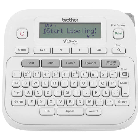 Details: Chaos? Meet organization. The Brother P-touch PT-D220 Home / Office Everyday Label Maker is versatile, easy-to-use, and the efficient way to clear out clutter in any home or office area. What can be organized with a Brother P-touch Label Maker? Almost anything! Featuring a QWERTY keyboard and one-touch formatting keys, this portable label maker makes you a hero of organization. Create calm in cupboards and easily restore order in your home office by identifying your files, sorting the contents of your desk, and organizing cabinets and bookshelves to perfection. Creating labels is practically foolproof! Preview before you print thanks to the 15-character display screen. Have a favorite label you’d like to re-print repeatedly? No problem! You can store up to 30 frequently used label layouts for quick reprinting. Go ahead and show off your unique style by choosing from 14 different fonts, 11 font styles, 99 frames, and over 600 symbols. For use with Brother Genuine TZe label tapes. Available in a wide assortment of options including laminated tapes, waterproof tapes, premium tapes with glitter, extra-strong adhesive for uneven surfaces, tamperproof security tapes, and more. Mastering your organizational to-do list just couldn’t be any easier or more satisfying. Want to design and print labels on your PC and print on label tapes up to 3/4" (18mm)? Check out the Brother P-touch Home / Office Advanced Connected Label Maker PT-D410.