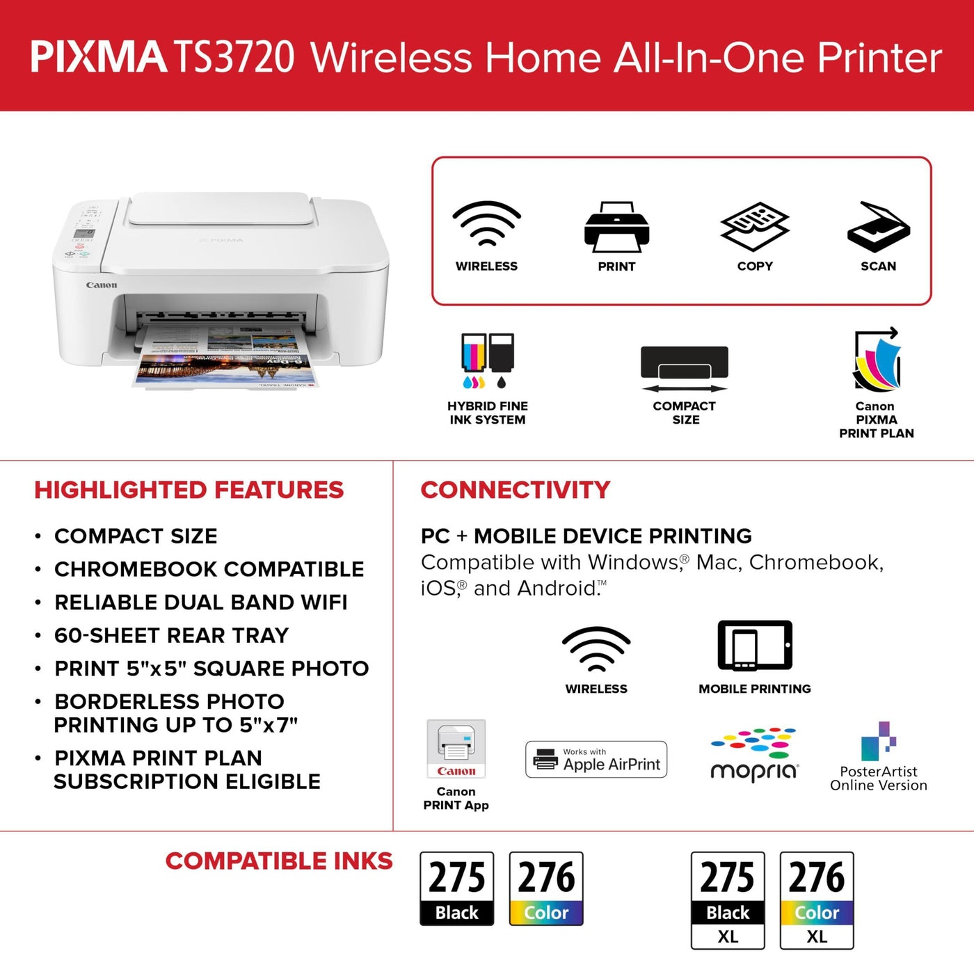 Canon PIXMA TS3720 Wireless All-in-One Printer (6671C022)