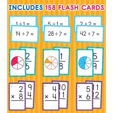 - Fractions, Multiplication and Division Flash Cards: Practice and reinforce essential math facts for school success in a fun and engaging way using Carson Dellosa’s 3-Pack of Math Flash Cards!