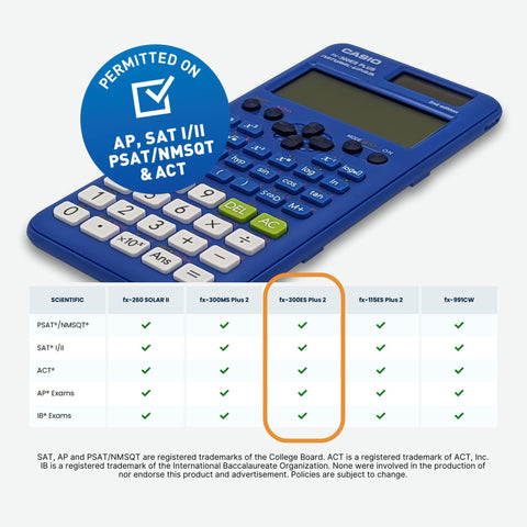 Details: Casio FX-300ESPLS2-S 2nd Edition Scientific Calculator with sleek new design and slide on hard case with Natural Textbook Display and improved math functionality. 262 Built-in Math Functions:, including basic and advanced scientific, exponential and trigonometric, fractions, regression analysis and more. It has been designed as the perfect choice for middle school through high school students learning General Math, Trigonometry, Statistics, Algebra I and II, Pre-Algebra, Geometry, Physics. Entry Logic: V.P.A.M. operating system. Solar power with battery back-up. Dimensions: W 3 1/8 x L 6 3/8 x H 1/2 inches 3.7 oz. Color Blue.
