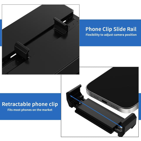 - Retractable phone clamp for extra stability: You can use the phone clamp, install it into the slide rail together with the upper cover, adjust the position of the phone clamp and the phone by sliding, so that the phone camera is aligned with the negative or slide. This allows your phone to be firmly fixed in place while scanning!