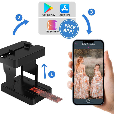 - Free App: Digitize your films and slides using the free app. We have included an easy to follow manual with detailed instructions on how to download the free app.You can also use other apps according to your preference, such as: SlideScan app (for scanning slides) and FilmBox app (for scanning negatives)