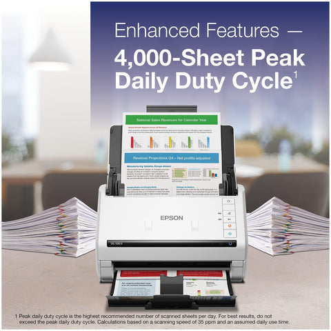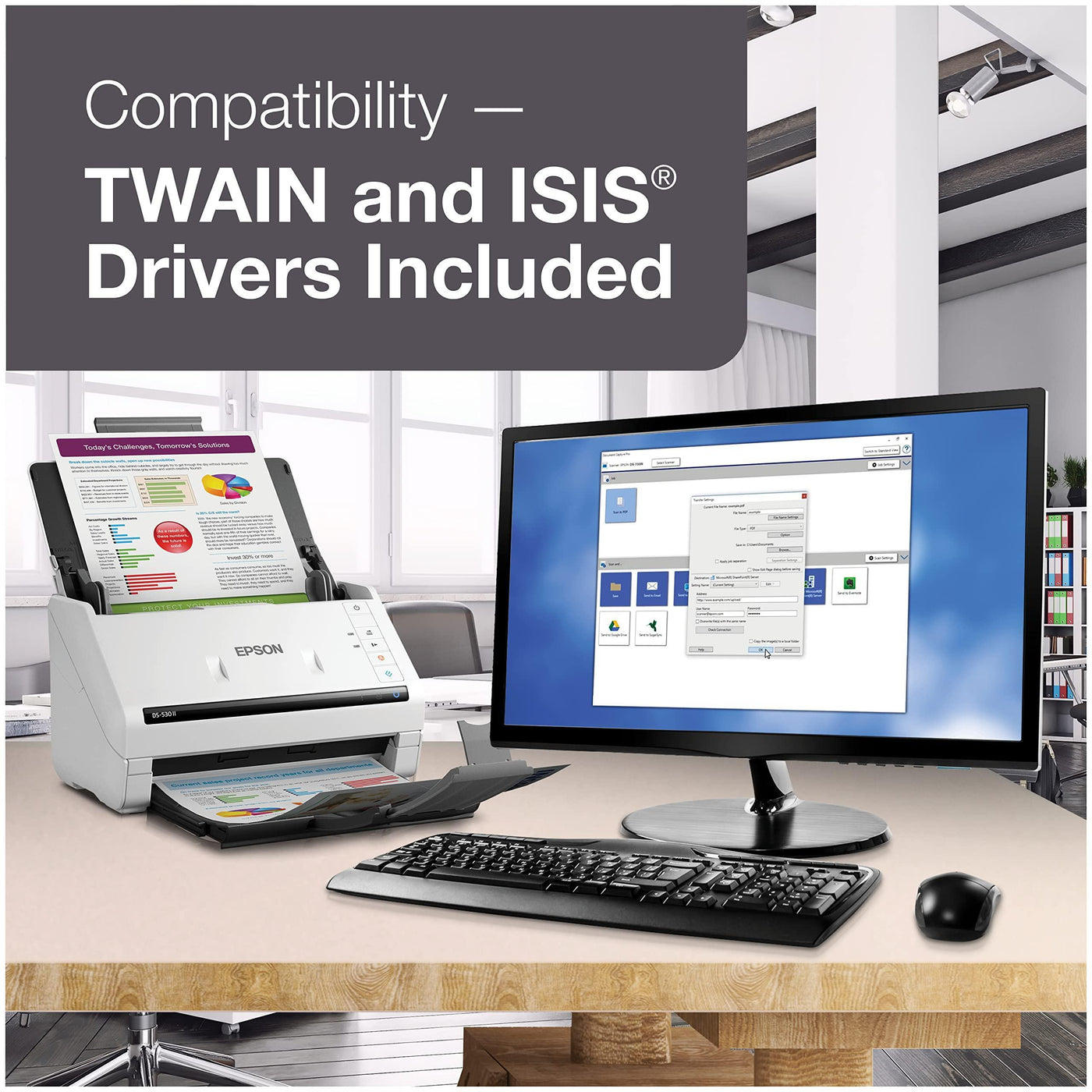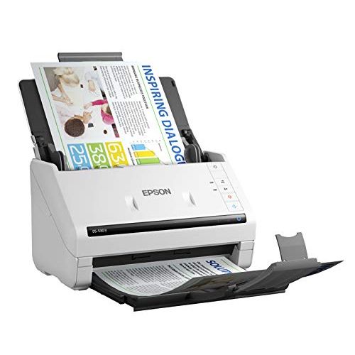 Details: With a fast, efficient performance, the DS-530 II Color Duplex Document Scanner offers a smart choice for business document management. Featuring speeds up to 35 pages per minute/70 images per minute, this powerful, compact performer offers a peak daily duty cycle of up to 4,000 sheets and includes TWAIN and ISIS drivers for seamless integration with most document management systems. Advanced paper-feed technologies include blank page removal, auto rotation, auto cropping, Dirt Detection and Paper Protection to help enhance productivity. The 50-page Auto Document Feeder saves time. Scan to online storage accounts. You can also generate searchable PDFs and editable Office documents. OCR software is included. Versatile paper handling lets you scan stacks of business and ID cards, single sheets, extra-long pages up to 240" , and folded pages up to 11" x 17". Easily automate tasks with the included robust, Document Capture Pro software for easily creating and managing scan jobs. Manufacturer: Epson Corporation. Manufacturer Part Number: B11B261202. Brand Name: Epson. Product Model: DS-530 II. Product Name: DS-530 II Color Duplex Document Scanner. Packaged Quantity: 1 Each. Product Type: ADF Scanner. [Technical Information] Large Format: Yes. Optical Resolution (dpi): 600. Scan Color: Color. Grayscale. Monochrome. Color Depth: 30-bit. Grayscale Depth: 24-bit. Maximum Mono Scan Speed (ppm): 35. Maximum Color Scan Speed (ppm): 35. Maximum Mono Scan Speed (ipm): 70. Maximum Color Scan Speed (ipm): 70. Media Type: Business Card. ID Card. Plain Paper. Media Size: Custom Size - 8.50" x 20 ft. Scanning Modes: Duplex. ADF Capacity: 50 Sheets. Duplex Scanning: Yes. [Interfaces/Ports] USB: Yes. [Software] Operating System Supported: Windows 10. Windows 8.1. Windows 8. Windows 7. macOS 10.10.x. macOS 10.15.x. [Physical Characteristics] Product Color: White. Height