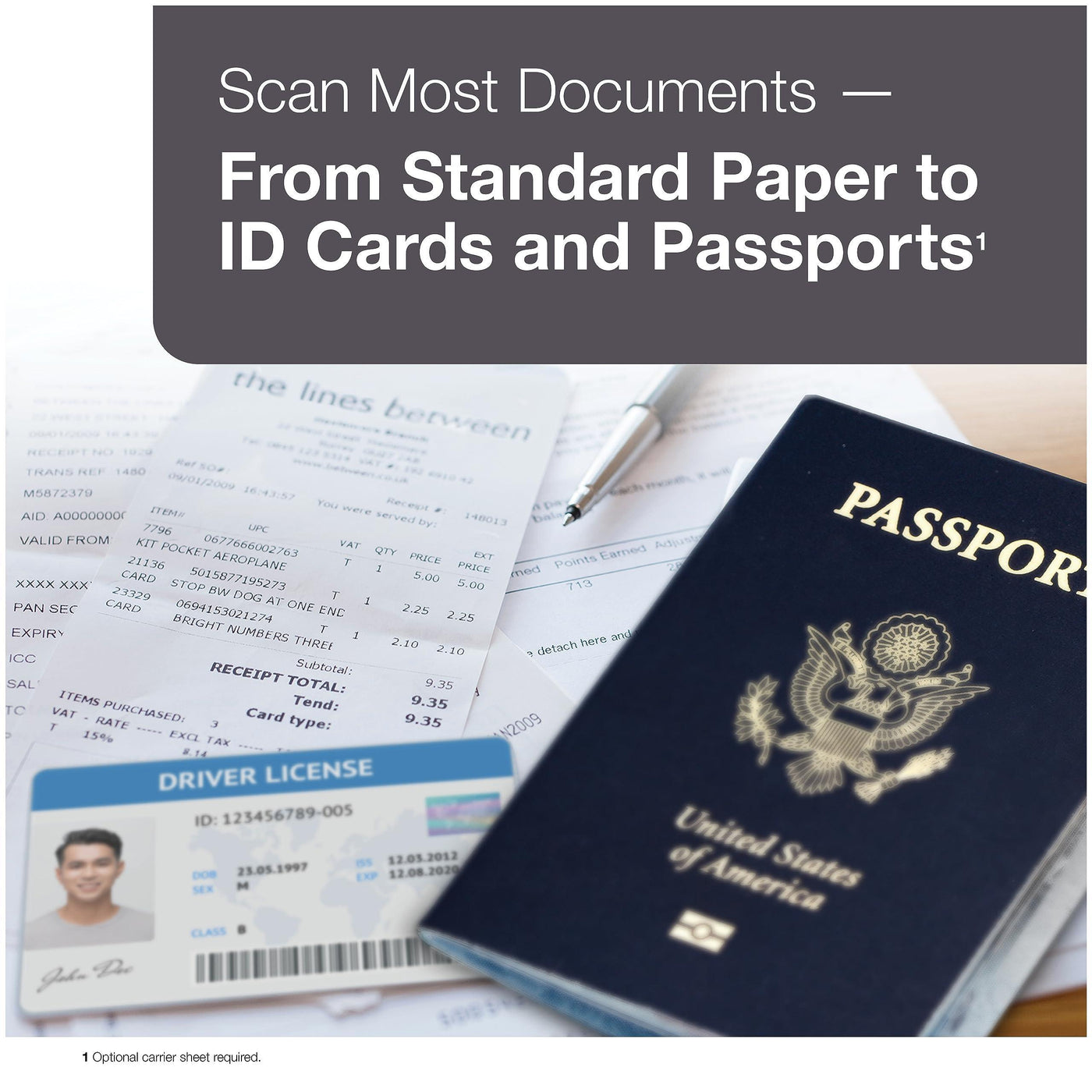 - Remarkable versatility — scan documents up to 8.5" x 120"4, from standard paper to cards and passports (2), using the flexible scan path