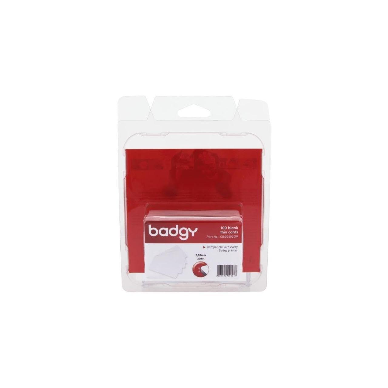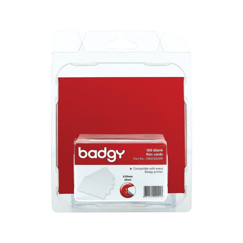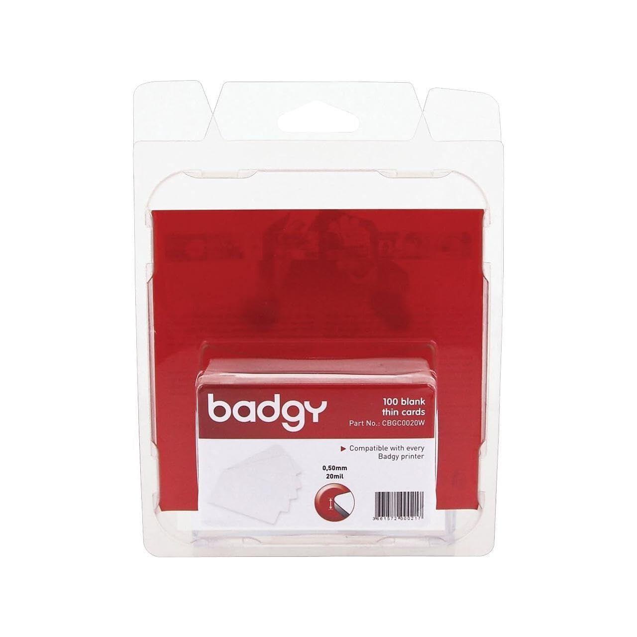 Details: Badge blank thin cards are designed for use with all Badge printers. Measuring 3.375'' x 2.125'' (the same size as a credit card), these cards are the standard, most commonly used plastic card size (also known as CR80). Blank Thin Cards are 20 mil thick, making them slightly thinner than a standard 30 mil credit card.
