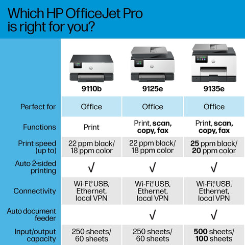 - FROM AMERICA'S MOST TRUSTED PRINTER BRAND – The OfficeJet Pro 9135e is perfect for offices printing quality color documents like presentations, brochures and flyers. Print speeds up to 20 ppm color, 25 ppm black