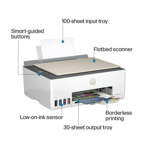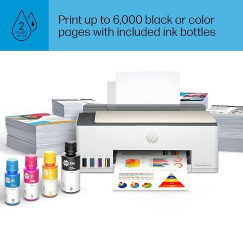 Details: The HP Smart Tank 5000 is a smart, connected and refillable tank printer that makes printing seamless for the whole family with its high capacity and wireless connectivity. Create everyday color documents at a low cost with up to 2 years of Original HP Ink included in the box.