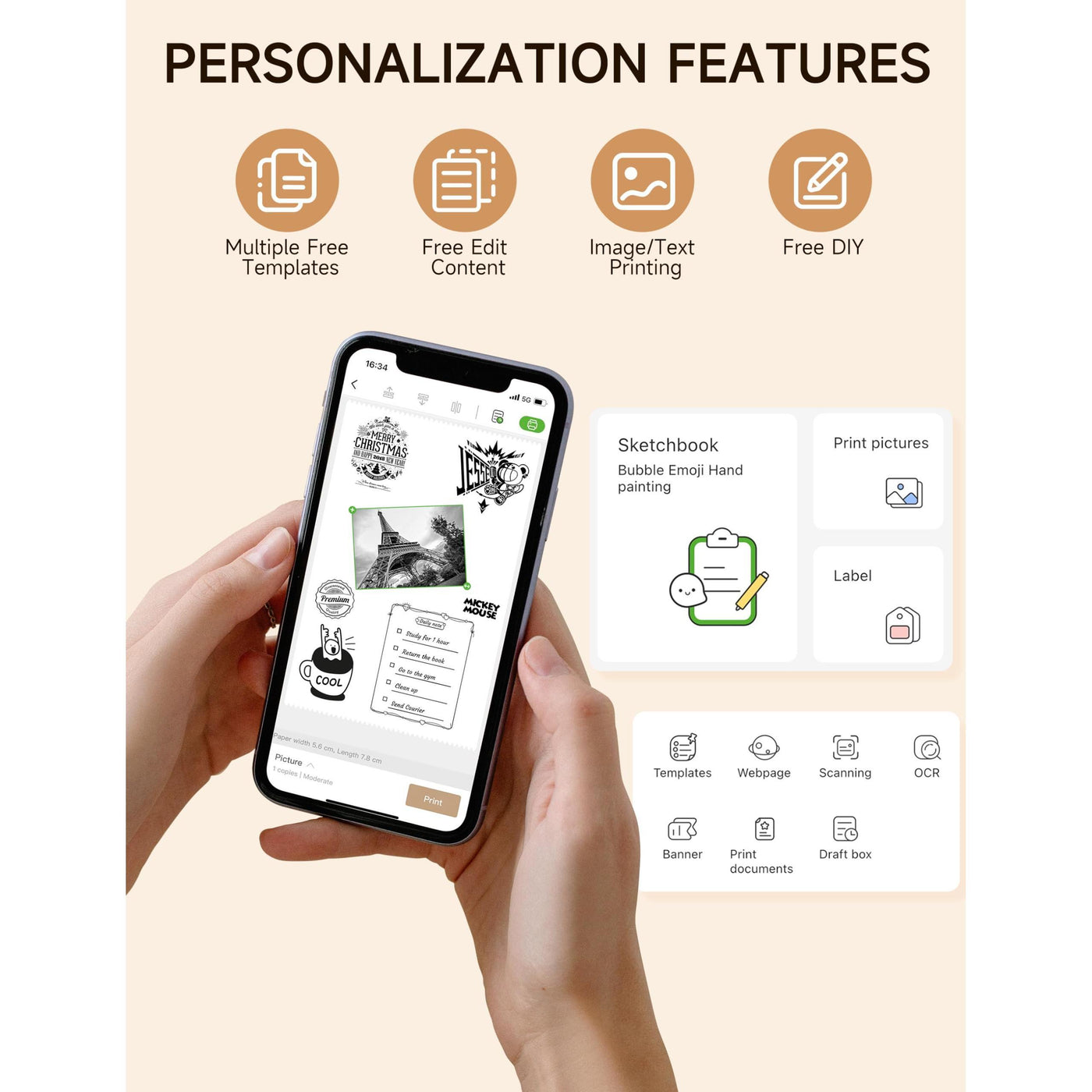 - Customized Label Printing: With our Mini Printer, you can easily customize your labels and stickers to suit your needs. Simply connect to the printer and let your creativity take over