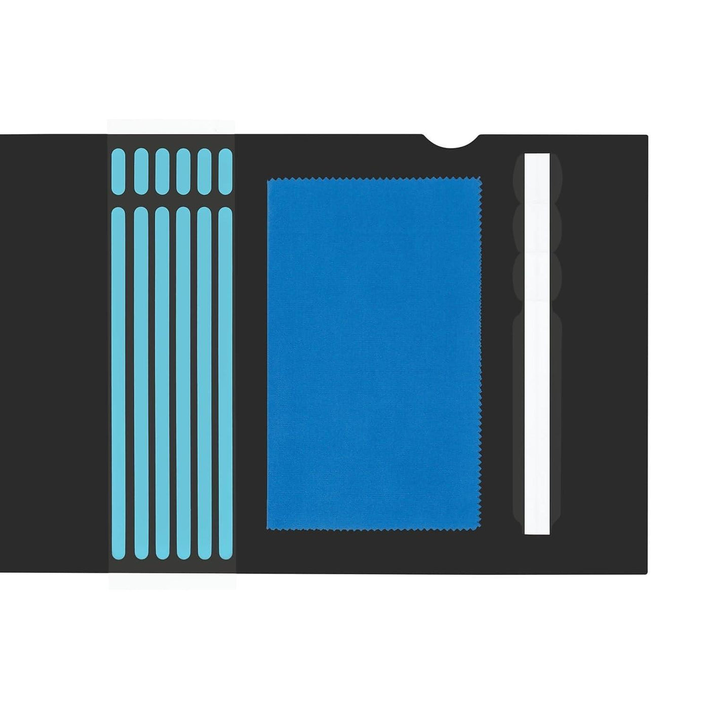 - Can be installed using the included frameless Tab holders or double-sided tape. Cleaning cloth included.
