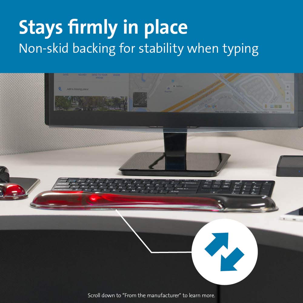 Details: The Duo Gel Keyboard Wrist Rest fits along the full length of a standard keyboard and molds itself to the shape of your wrists to provide complete comfort and support as you type. Featuring a stylish, duo-tone color combination, it features a ventilation channel to keep your hands cool and dry and the soft finish is easy to wipe clean when it gets dirty.