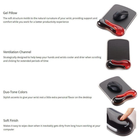 Details: The Duo Gel Mouse Pad combines a durable vinyl pad, providing a rigid base for fast and accurate mouse movement, with a wrist rest that molds itself to your wrist shape for complete comfort and support. With stylish duo-tone colors, it features a ventilation channel to keep hands cool and dry and the soft finish is easy to wipe clean when it gets dirty.