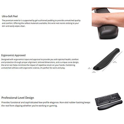 Details: Scientifically developed to prevent injury while optimizing comfort, the ErgoSoft Wrist Rest for Mechanical & Gaming Keyboards features an ultra-soft exterior supported by gel cushioning. Combining unmatched softness with ergonomic science, the wrist rest is perfect for work and play. Innovation, quality, and trust have made Kensington The Professionals' Choice in ergonomics for more than 20 years.