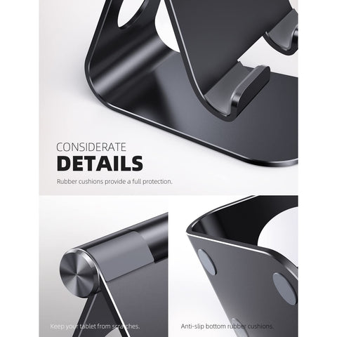 - 【STURDY CONSTRUCTION& RUBBER PADS】 Rubber pads and feet of tablet stand can protect your device from daily scratches and sliding