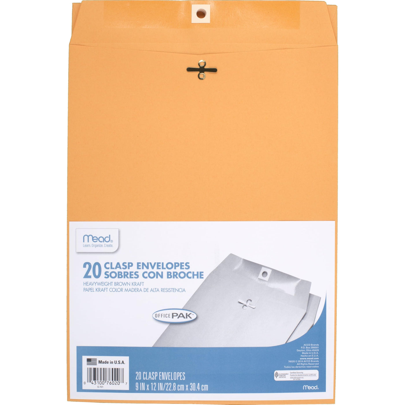 Mead Envelopes, 9" x 12", Clasp Closure, Brown Kraft All-Purpose 24-lb Paper Mailing Envelopes, 20 Count (76020) Sale