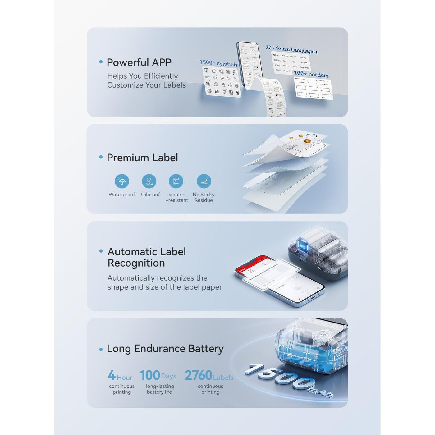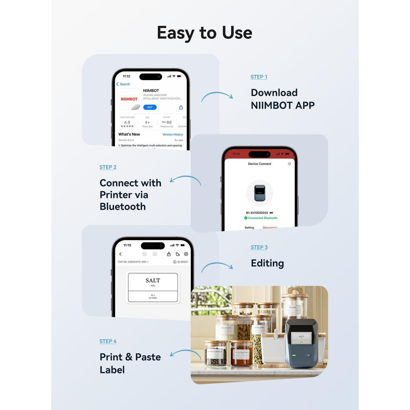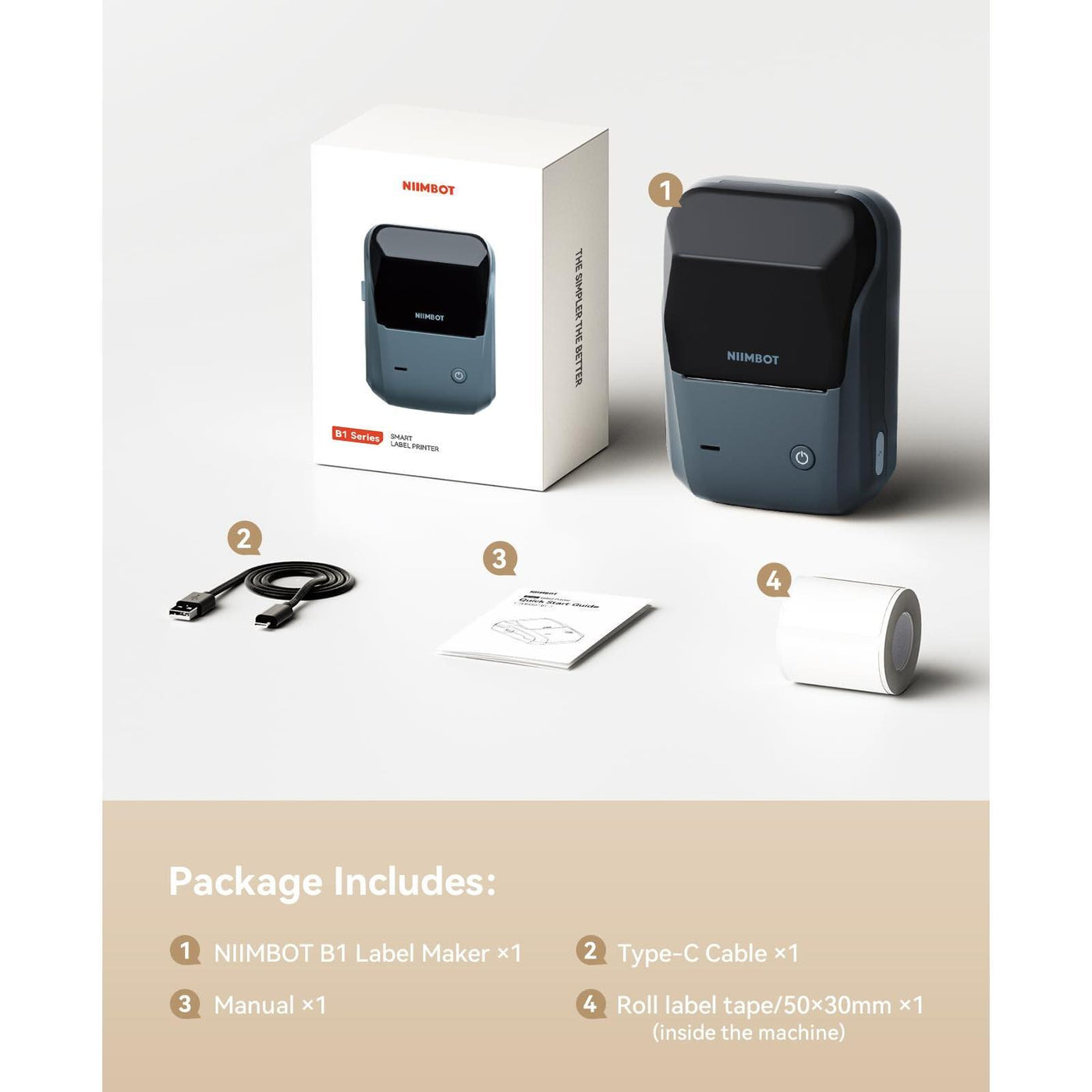 NIIMBOT B1 Label Maker Machine with Tape, 2 Inch Portable Label Printer, Bluetooth Thermal Label Printer with Multiple Templates for Small Business,Office,Home,School (Blue, 1 Printer+1 Roll Label)